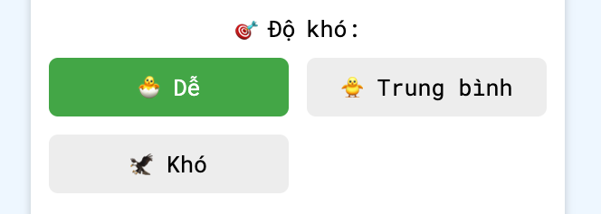 Bé có thể chọn mức độ phù hợp với khả năng của mình, từ dễ tới khó.